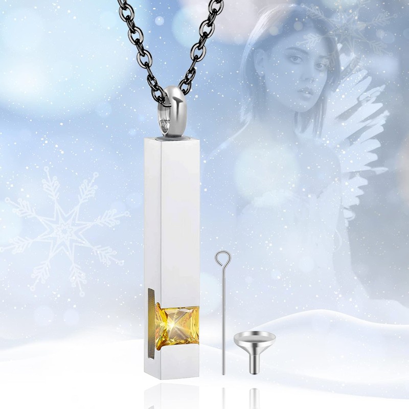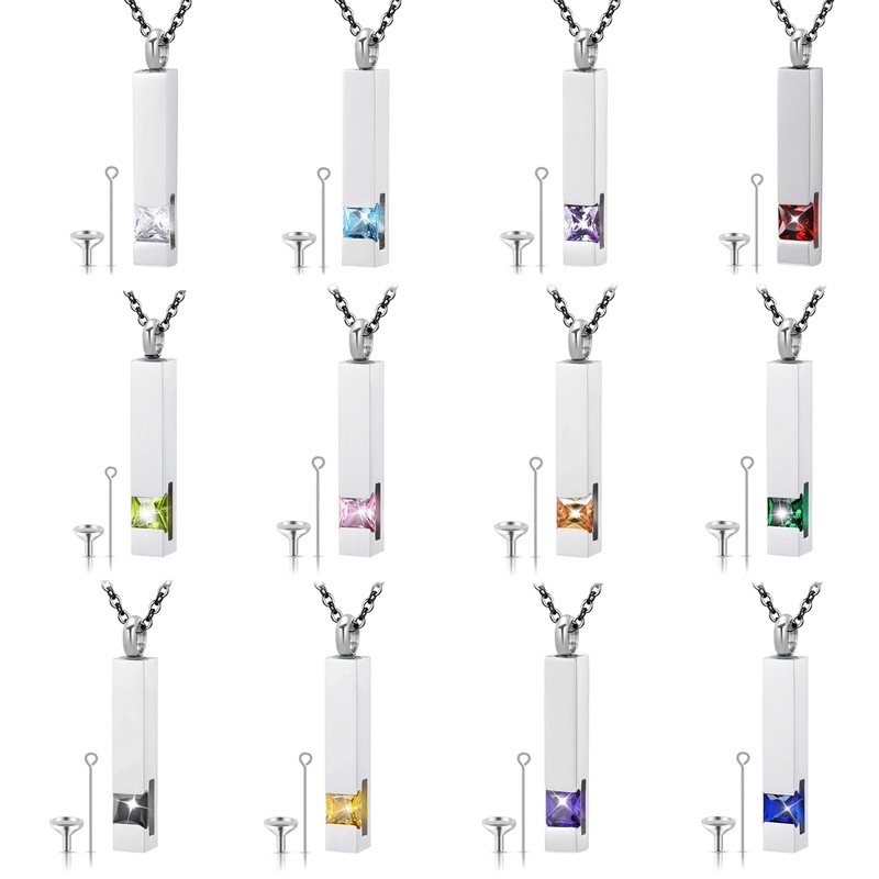 Flongo Birthstone Necklace, Zircon Necklace, Cuboid Cremation Stick, Free Engraving, Funnel Included, Stick, Memorial Accessory, Pair Necklace, Couple, Matching, Stainless Steel, For Your Hand,