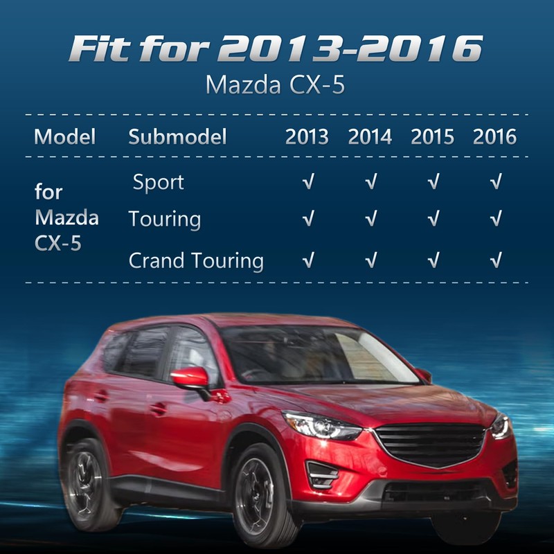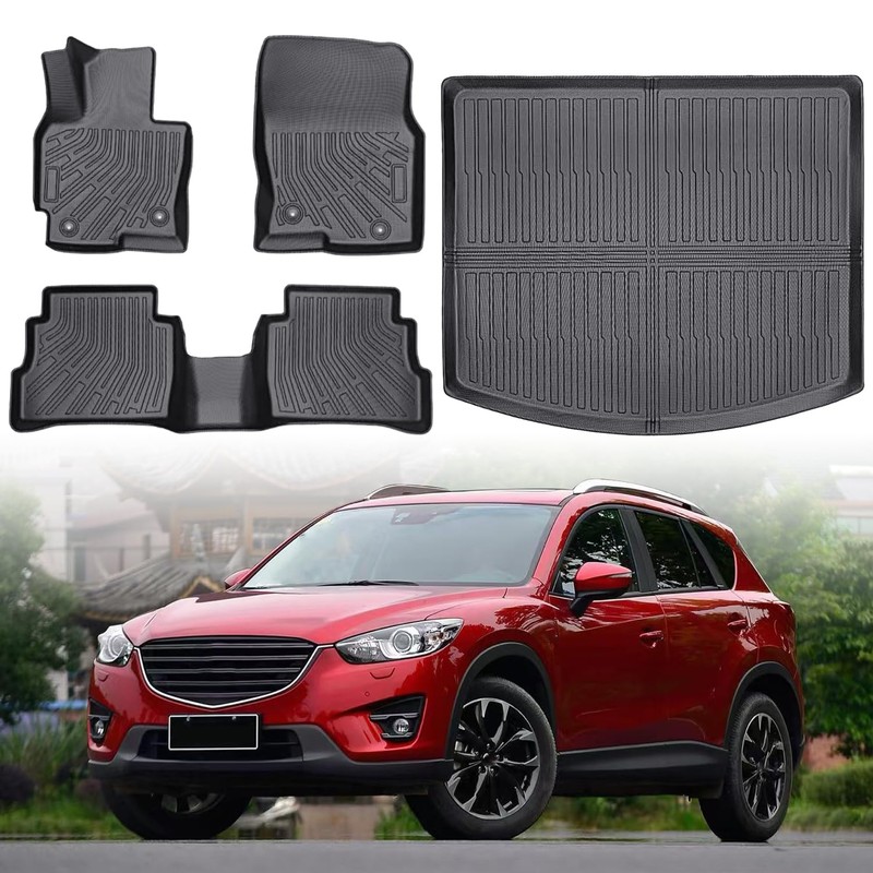 - [CUSTOM FIT] These floor mats and trunk liners are custom-designed to ompatible with 2013 2014 2015 2016 Mazda CX-5. Using cutting-edge 3D laser scanning technology, we precisely capture your vehicle’s original design to ensure a perfect, full-coverage fit. Special attention is given to critical areas like the throttle and brake, ensuring there’s no interference with your driving experience