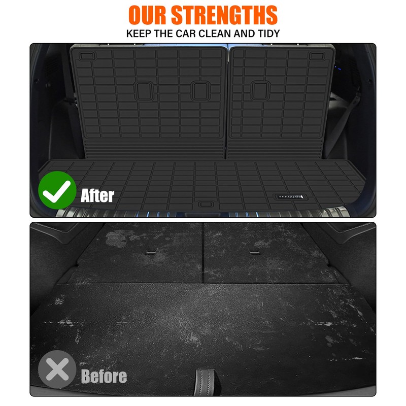 - All Weather Protection & Multi-Function:Floor cargo mats can withstand all kinds of extreme weather, with a unique design that blocks rain, snow, mud, food residue, liquids, etc. and the raised side walls prevent liquids from leaking onto the carpet. Not only suitable for daily commuting and vacation travel, but also very suitable for outdoor adventures and carrying pets, etc