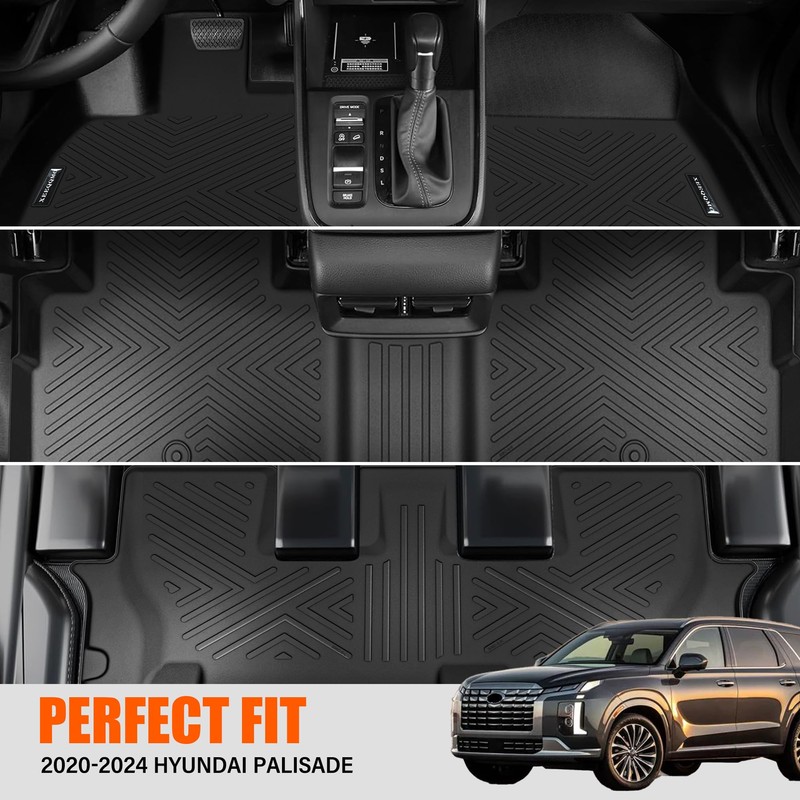 - CUSTOM FIT:Floor Mats & Cargo Liner is designed based on the original car and is perfectly compatible with 2020 2021 2022 2023 2024 Hyundai Palisade. It is made using precise 3D laser scanning to provide a perfect fit for the entire car and coverage of every corner, leaving no gaps for dirt or liquids to penetrate