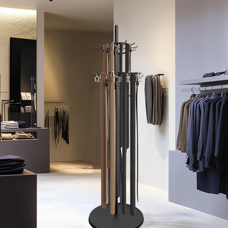 - QUALITY CONSTRUCTION:The Floor Standing Black Belt Display Rack showcases the perfect combination of fashionable style and durability. The belt display rack is made of sturdy metal iron with a high-temperature baked and painted finish, the rack is both scratch-resistant and colorfast, making it a long-lasting choice for your home or store.