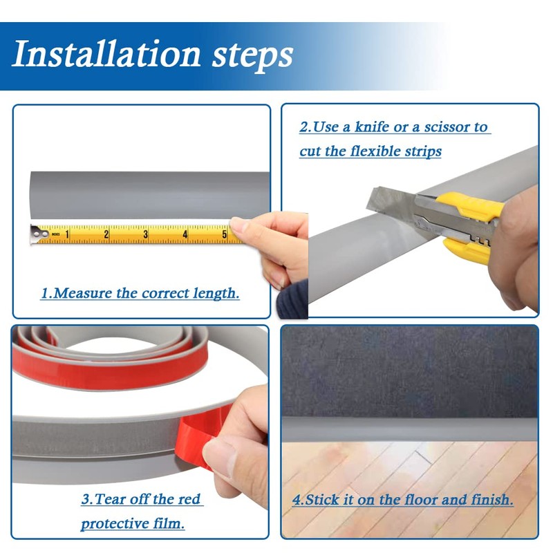 - 【Easy to Use】The carpet edge trim is quick and simple to be installed. Firstly, measure the required length in advance and then freely cut to your custom length. Secondly, tear off the red backing tape and place it to a suitable position. Finally, stick firmly on the floor and embed the carpet in the side of notch.