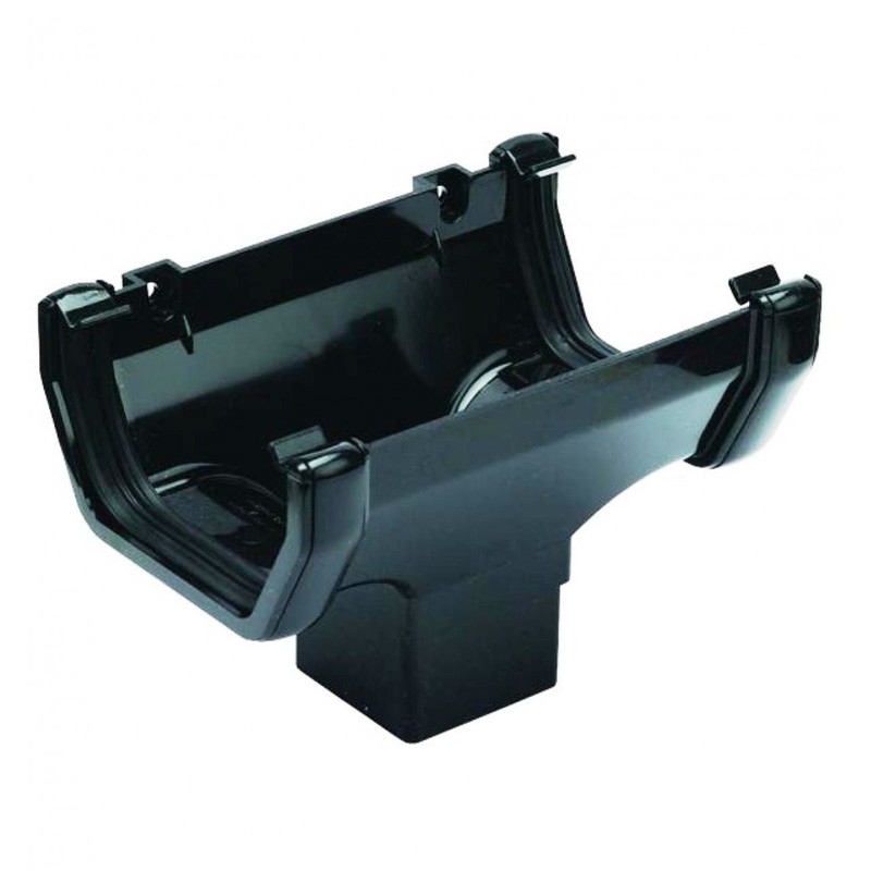 FLOPLAST 114mm Square Gutter Running Outlet - Black