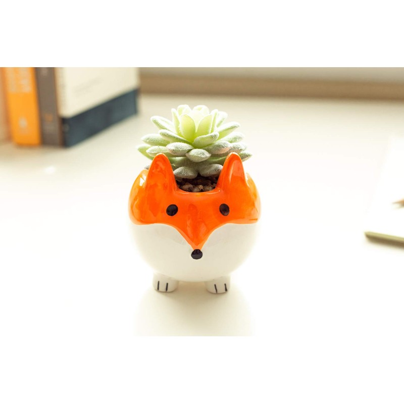 Flora Bunda Artificial Plants in Cute Animal Novelty Planter Artificial Succulent in 3.5" Small Orange Fox Ceramic Planter,Set of 2, 3.5 x 3.5 x 4.5 inches