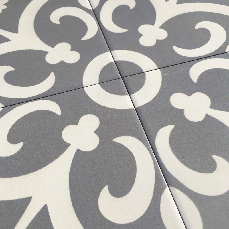 Flora Encaustic Soft Gray White 8x8 Satin Glaze Ceramic Tile (PER Piece)
