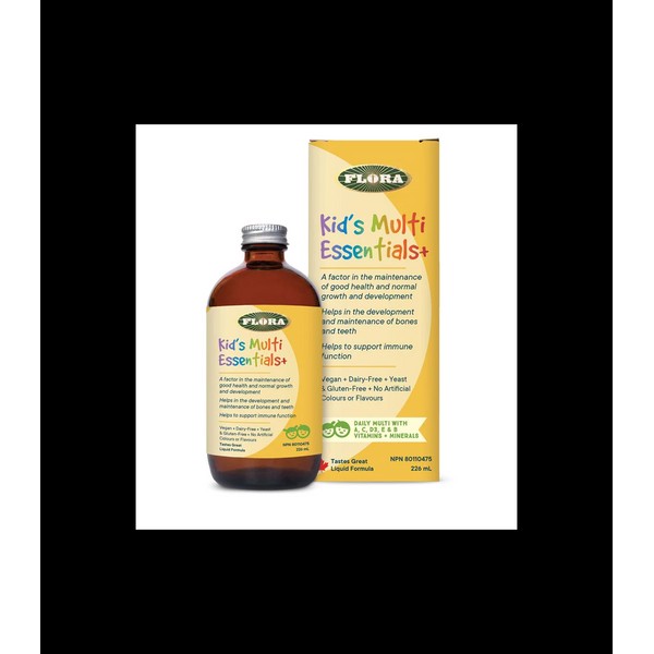 Flora’s Kid's Multi Essentials+ is rich in antioxidants vitamins A, C and E, protecting cells from free radicals, and include a full range of B vitamins for healthy growth and development. This comprehensive vitamin and mineral formula also includes a full 400 IU of immune-supporting vitamin D, calcium, and an herbal blend of antioxidant astaxanthin, immune-supporting elderberry, digestion-promoting anise, calming chamomile, and rose hips for extra vitamin C. This vitamin and mineral formula comes in a tasty fruit juice and whole food base that’s easy to drink straight or mix into smoothies or juice.\