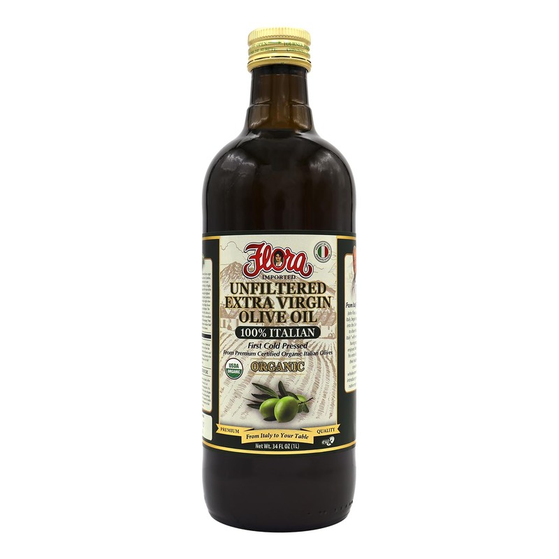 Flora Organic Extra Virgin Olive Oil Unfiltered 100% Italian (34 Fl Oz (1L))