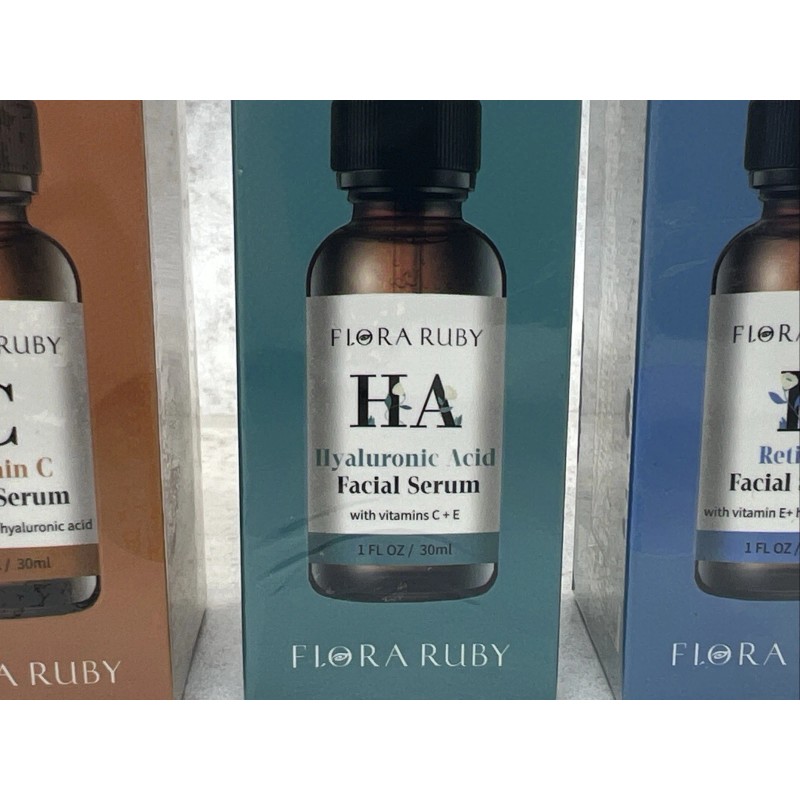 Set Of 3! Flora Ruby Facial Serums- Vitamin C, Hyaluronic Acid & Retinol! 6/2027.