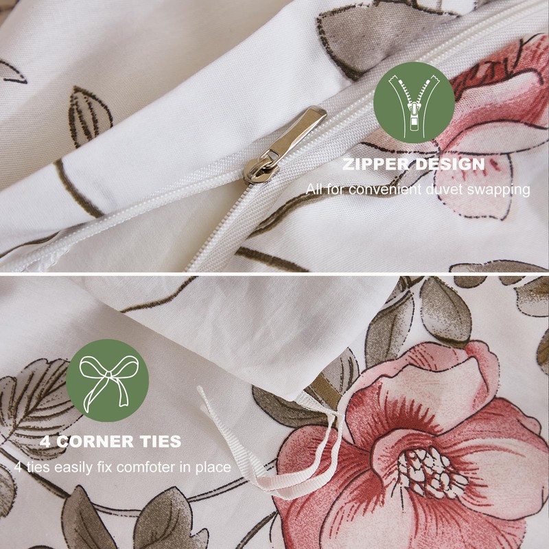 Floral Bedding King 100% Cotton Duvet Cover Set Botanical Comforter Cover Cute Garden Pink Flower Breathable Lightweight 3 Pcs