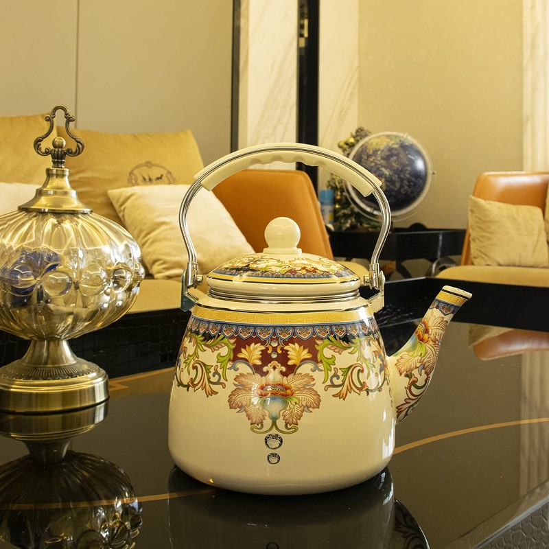 Floral Ceramic Enamel Teapot Tea Kettle for Stovetop,Large Porcelain Enameled Teakettle (3.3QT Mystery flower)