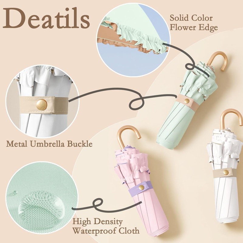 - Exquisite Floral Edge, stylish and chic: The hand-sewn floral edge decoration made of the same material as the umbrella cloth,and comes with a large storage bag, which not only adds elegance and beauty, but also makes the umbrella a highlight of fashion matching. Whether you are strolling on the bustling city streets, attending an outdoor party, or taking pictures, when you open this umbrella, its unique appearance will surely attract many eyes and make you the focus of social interaction.
