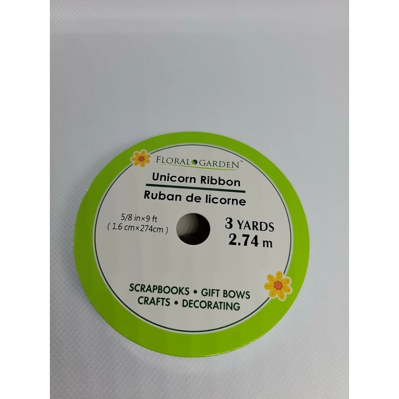 Floral Garden Unicorn Ribbon 5/8" x 9', 3 yds - Scrapbooks, crafts, decorating.