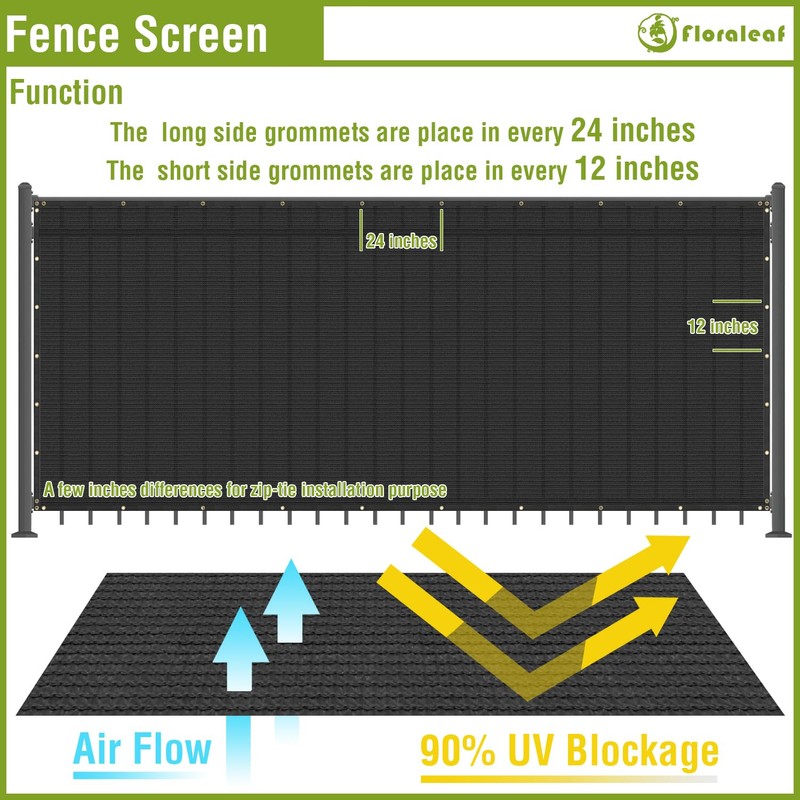 - Easy to Install: Edges are finished with heavy duty bindings and stainless copper grommets, all stitching are reinforced, Easy to Install with cable zip ties. Compared to 4 grommets on the market, our 3 grommets are more convenient and more stable fence screen. Comes with Zipties.
