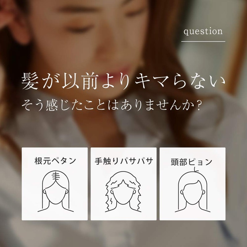 Moisture-Bounce Formula (*4) provides moisture to the scalp and hair and supports the feeling of voluminous bouncing from the root; Formulated with a curly polymer composition (*5) that gives hair a firm feel. It also approaches dryness, dandruff, and itchy.