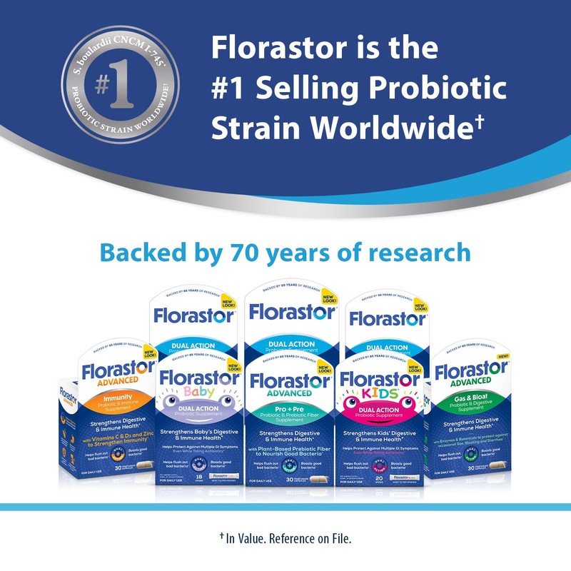 • The probiotics of choice: The number 1 selling probiotic strain in its class worldwide; Florastor formulas are made with ingredients that are vegetarian, gluten-free, titanium dioxide-free and appropriate for lactose intolerance