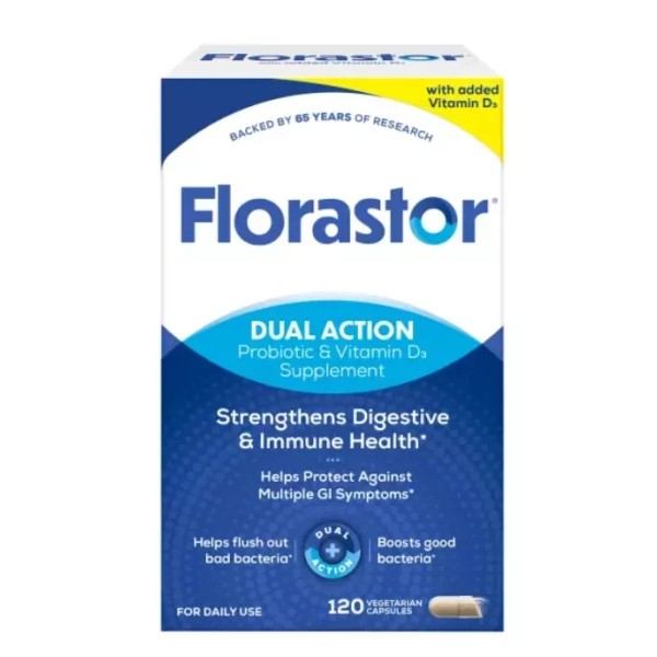 Florastor Daily Probiotic with Vitamin D3, 120 Vegetarian Capsules