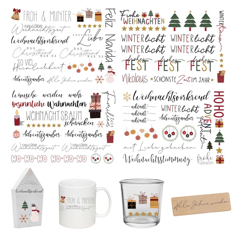 FloraVigo Rub On Sticker Approx. A5 19 x 14 cm (4 Pieces) (Merry Christmas 3)