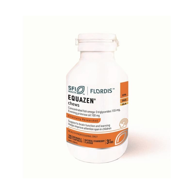 enhance learning ability in children. EQUAZEN contains a scientifically developed ratio of omega-3 and omega-6 (derived from responsibly sourced fish oil and evening primrose oil) shown to improve attention, support focus, and working memory. This uniquely balanced ratio of EPA:DHA:GLA has been clinically trialled to support healthy brain function and improve learning, particularly in the areas of reading and writing. The EQUAZEN formula is based on years of research and expertise. Numerous clinical trials have indicated that EQUAZEN significantly improves cognitive function and improve the ability to learn. All ingredients in EQUAZEN have been rigorously tested for purity and therapeutic activity, including independent laboratory testing for heavy metals and other contaminants. Every EQUAZEN® batch meets and surpasses industry standards. Available as triple-strength capsules, original capsules, and easy-to-take strawberry-flavoured chewables, EQUAZEN provides a balanced intake of essential fatty acids at every life stage. EQUAZEN capsules are an easy-to-swallow 5mm size to be taken in divided doses throughout the day. - Optimal balance of Omega 3 and Omega 6 fatty acids - Improves learning ability in children - Supports healthy cognitive function - Supports concentration and alertness - Enhances learning ability, including reading and writing - Rigorously tested and certified - Available in easy-to-take capsules and chewables Flordis is now SFI Health! The same high-quality ingredients and clinically researched products with a fresh new look. |
