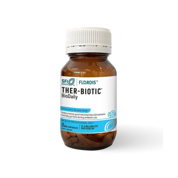 THER-BIOTIC BioDaily is an evidence-based probiotic formula which combines specific beneficial probiotic strains that have been clinically researched to help restore intestinal flora, support the gut during antibiotic use, and maintain healthy immune function. Not only has THER-BIOTIC BioDaily been shown to maintain gut flora diversity, but it is also clinically researched to reduce symptoms such as constipation and bowel discomfort, and has been shown to support immune function.