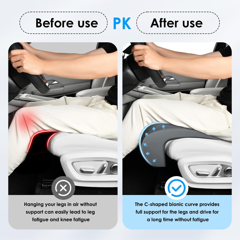 - 【Relieve fatigue and upgrade comfort】The car leg extender extended leg support pad provides larger legroom for tall people, perfectly filling the gap between the seat and legs, easily solving the embarrassment of long legs and short seats, making long-distance driving more comfortable and fatigue resistant.
