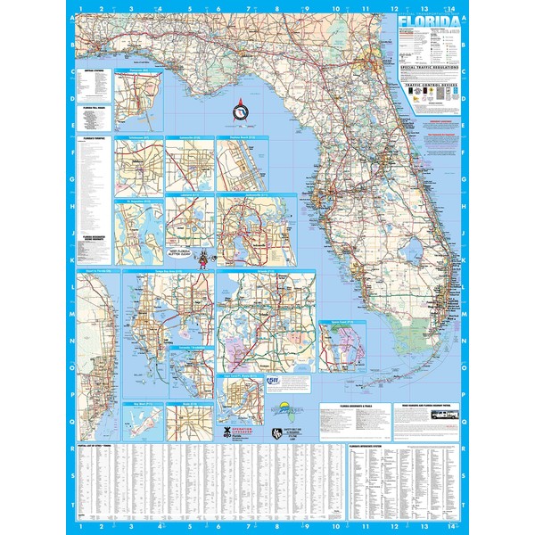 This updated commercial wall map of Florida, produced by the Florida Dept of Transportation, is ideal for anyone needing a comprehensive representation of the state for planning, routing, or reference. It's a great choice for business and sales strategy, urban development, social work outreach, education, and marketing. The Laminated wall map is printed with UV-resistant ink to help prevent color fading. Map details include state highways, federal highways, county highways, county boundaries, cities and towns, major waterways, state/national parks, campsites, rest areas, military installations, airports, golf courses, universities, and much more. You'll also find a city/county index on the map to include inset maps with more detail of major cities!!