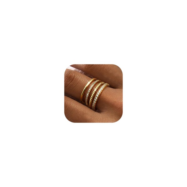 • 【Stacking Ring Set】: Contains 4PCS of simple and delicate thin rings. Including half circle cubic zirconia and full circle cz. Provide gold and silver colors for selection. Womens rings gold that don't tarnish are suitable for people of different age groups.