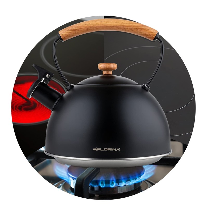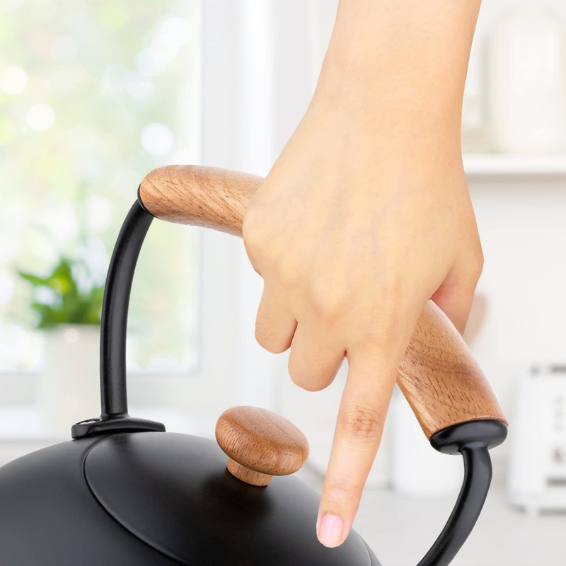 - Suitable for all kitchens: the kettle is suitable for all types of cookers: induction, glass ceramic, gas or electric. The design of the wooden handle gives it a touch of style and distinction.