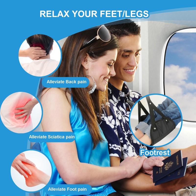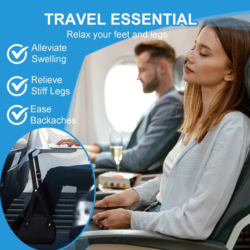 • 💺 Comfortable Travel & Work: Say goodbye to travel discomfort! Our foot hammock helps improve leg circulation and posture, easing lower back pain, leg stiffness, and swelling during those long flights or workdays. Perfect for airplanes, trains, buses, and even your office.