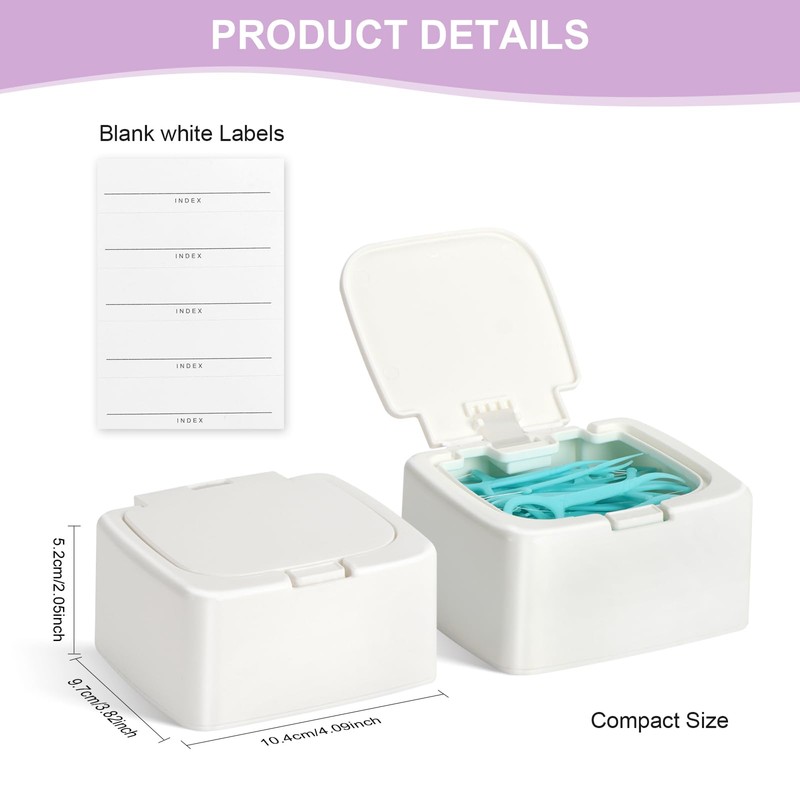 Floss Pick Dispenser,2packs Refillable Press Flip Floss Sticks Holder,Reusable Tooth Pick Case for Cotton Swabs,Balls,Pads,Qtip - Rectangular Storage Box for Home,Hotel,Office Organizers - White