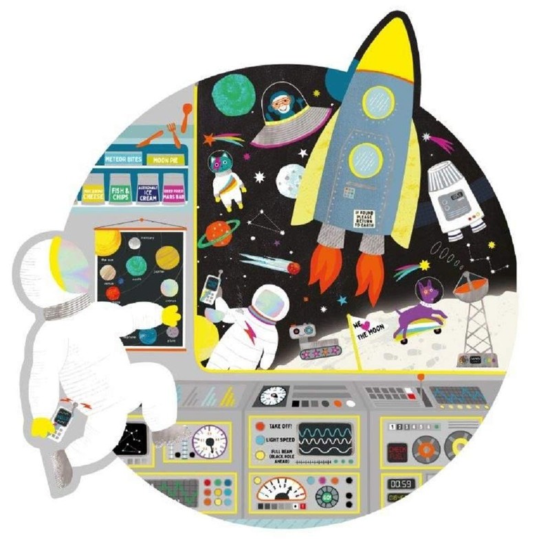 Our 100pc puzzle is made up of 3 separate puzzles that all integrate into 1. There are 2 x 12pc larger puzzles that then attach onto the main 76pc puzzle. Our Space design has a large sized Astronaut to find and make and a rocket, they then slot into the super cool space station. All contained in a fabulous high quality attaché case with brightly coloured handle. So much fun! Suitable for: +5