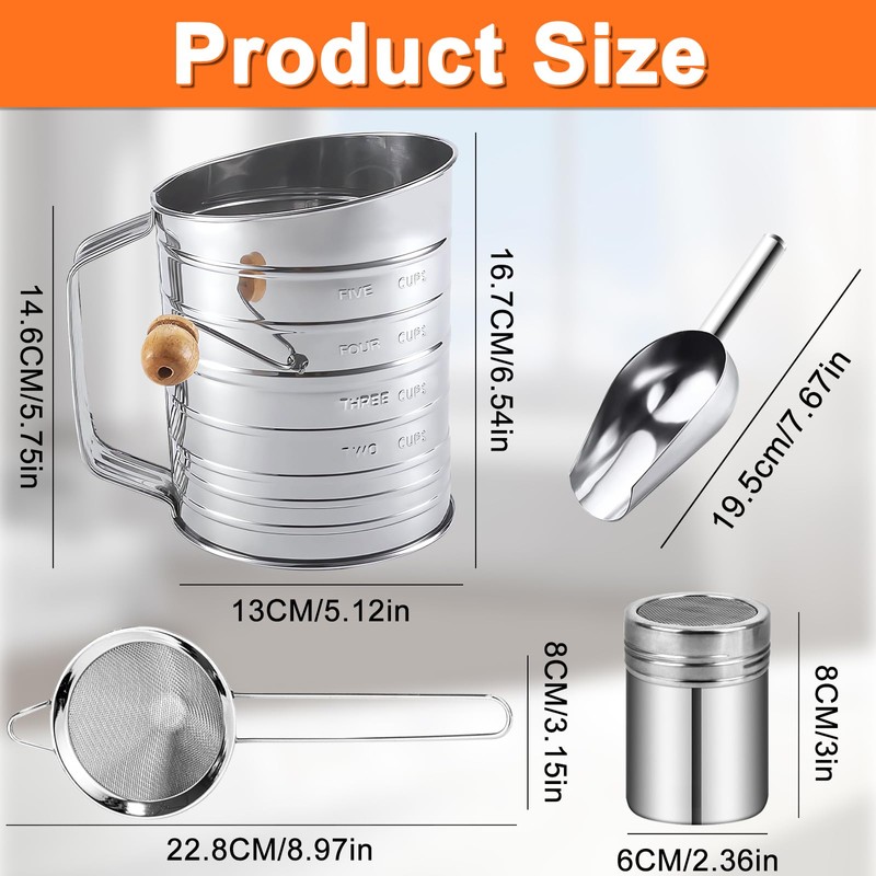 Let this flour sifter set become your right-hand assistant in the kitchen, bringing you professional baking experience and unparalleled sense of accomplishment every time you use it.