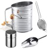 - This four-in-one baking sifting set not only comes with a flour sifter, but also comes with a powdered sugar sprinkler, a fine mesh strainer and a metal spoon, suitable for making all kinds of cakes, pastries, pies, cupcakes and other desserts.