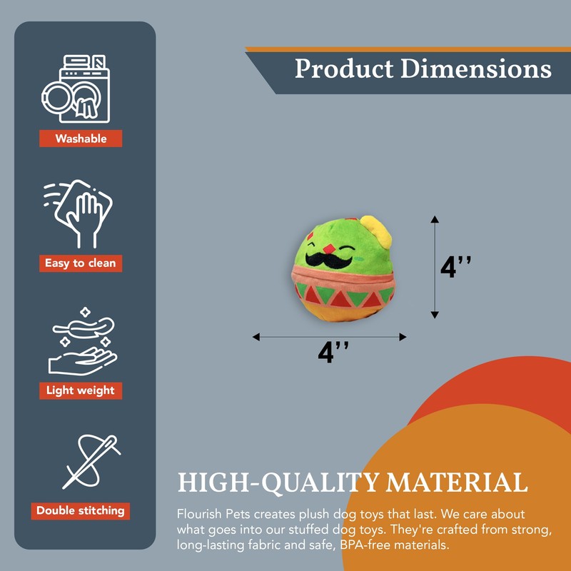 Flourish Pets 2 in 1 Dog Chew Toys | Non-Toxic BPA Free Double Stitched Soft Fabric Exterior Dog Toys | Long-Lasting Dog Plush Toys – Mr. Guac