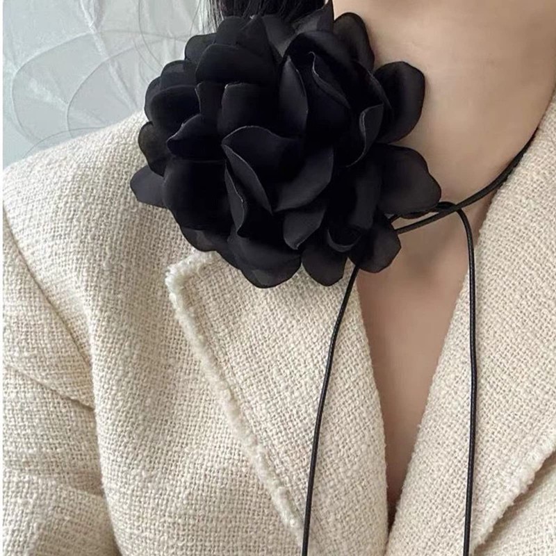 Flower Choker Bohemian Flower Rose Choker Necklace Flower Necklaces for Women Black White Bow Flower Lace Necklace Wedding Jewelry Gift for Women Teens Girls