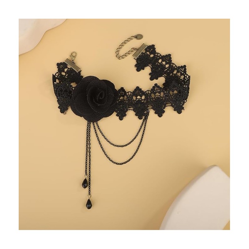 Flower Choker Necklace Jewellery with Crystal for Women Lace Choker Necklaces Rose Choker Necklace for Prom Costume Party Cosplay, Metal, No Gemstone (Black, One size)
