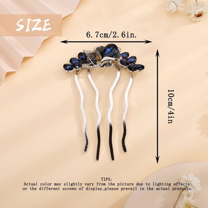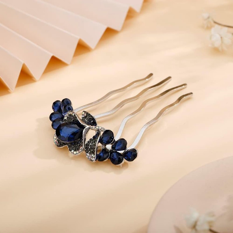 Flower Crystal Styling Hair Combs Dainty Rhinestone Twist Combs Hair Pieces Interposing comb Hair Accessories for Women and Girls (Blue, One Size)