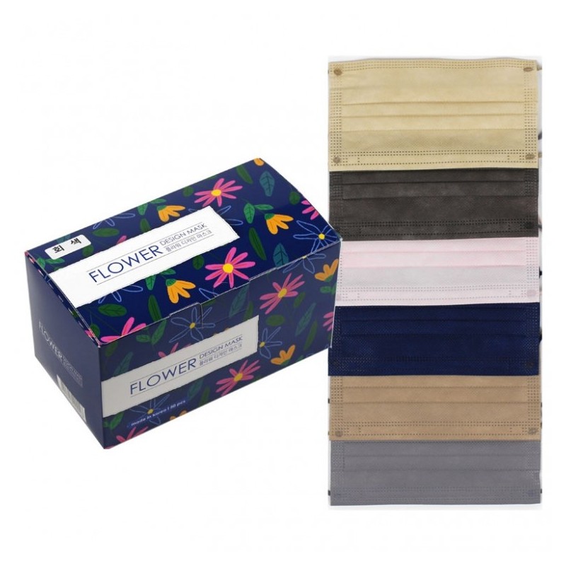 Flower Design Color Mask Dark Gray (50 Pcs) 2ea