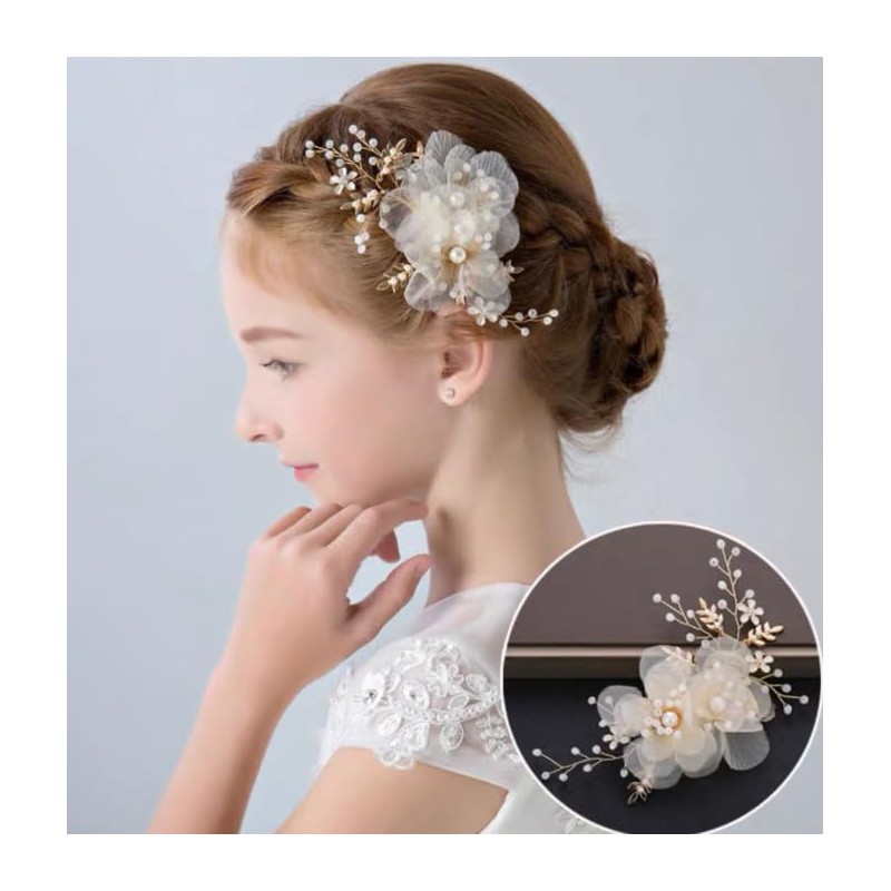Flower Hair Accessory Pearls Floral Cute Elegant Hair Pin for Bridesmaid Wedding Dress Party (White, One size)