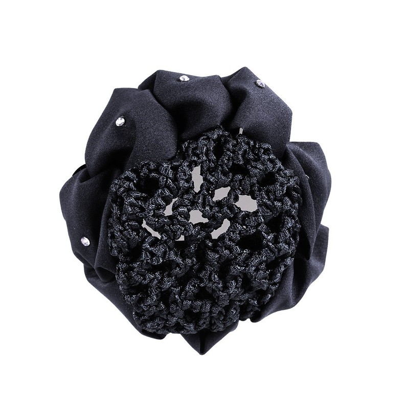 Flower Hair Bow | Pretty Knot Band | Fine Mesh Hair Net | Two Clips Ensure Secure Attachment (Black)