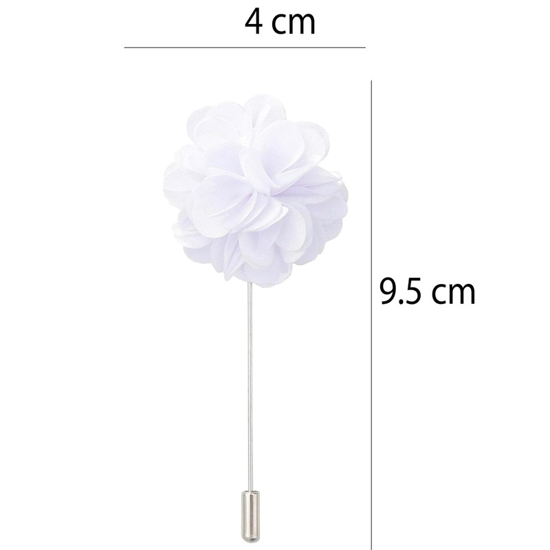 - The flower measures approximately 2.0 in. (L) X 2.0 in. (W). The whole pin is approximately 3.5 in. long