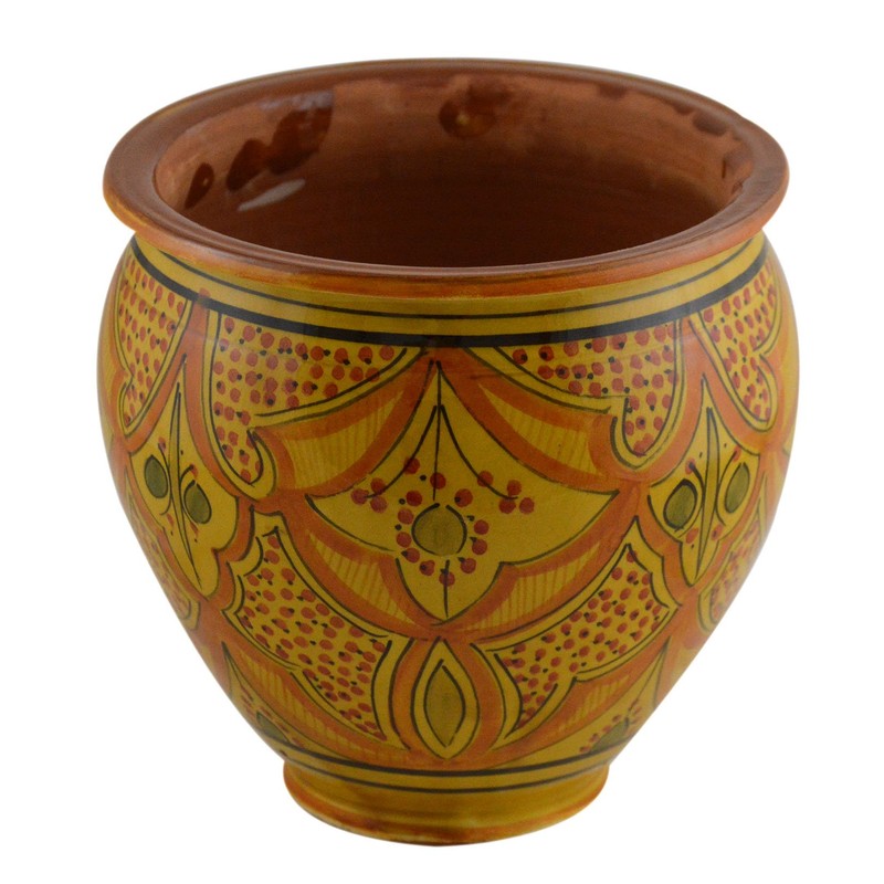 Treasures Of Morocco Handmade Ceramic Flower Pot Moroccan Indoor Outdoor Mediterranean Spanish Style Garden Drain Hole Planter Yellow