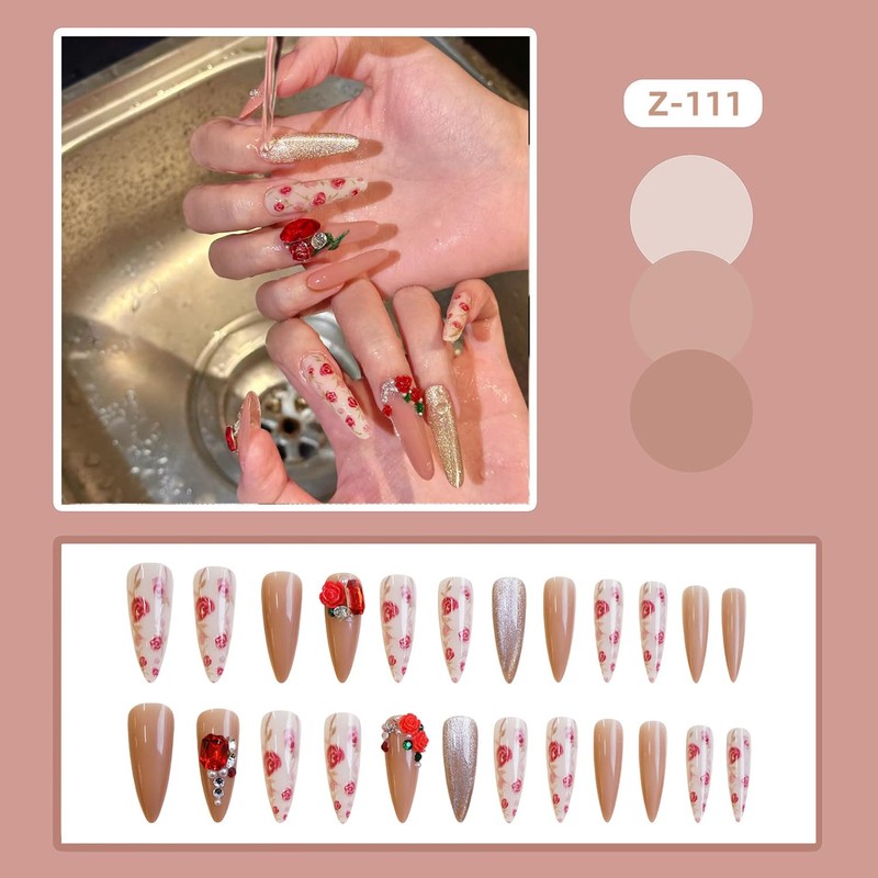 - Fake Nails Design: Our artificial nails use flower rhinestones design style, give you unique feeling, pretty and comfortable press on nails will give you good mood and add luster to you