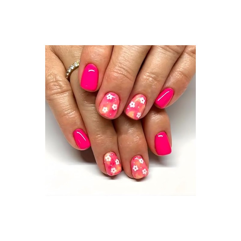 - Flower Press On Nails Short Square, 24pcs Flower Fake Nails for Spring Summer Nail Accessories