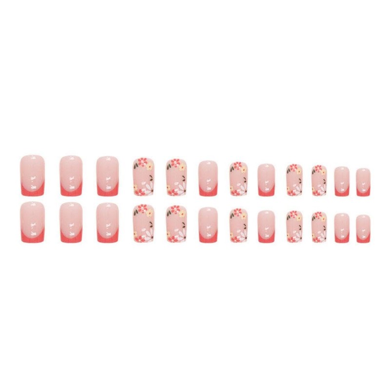 Flower Press on Nails Square Maigitur Orange Design Short Fake Nails Press ons, Artificial French tip Full Cover Fall Glue on Nails Glossy Flower Stick on Acrylic Nails for Women Manicure 24Pcs…