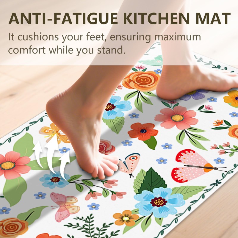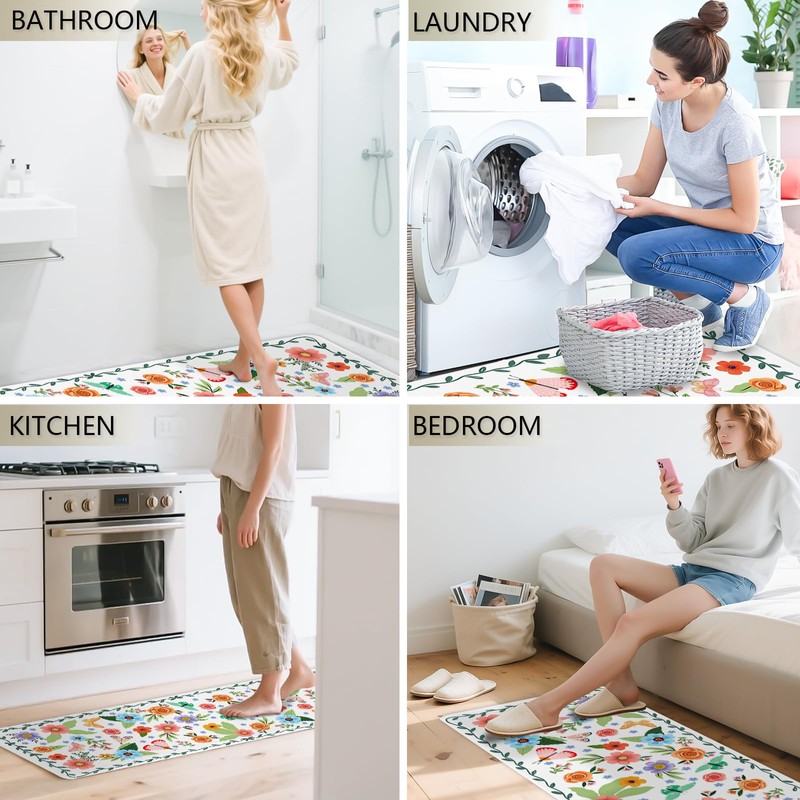 - STABLE AND NON-SLIP: The back of the kitchen mat is made from a thickened non-slip material that provides a strong grip. Compared to ordinary bathroom mats, its non-slip performance is superior. It can firmly adhere to smooth tiles, marble, or hardwood floors, keeping the kitchen floor dry and clean. It is an ideal choice for families with elderly individuals, children, or pets.