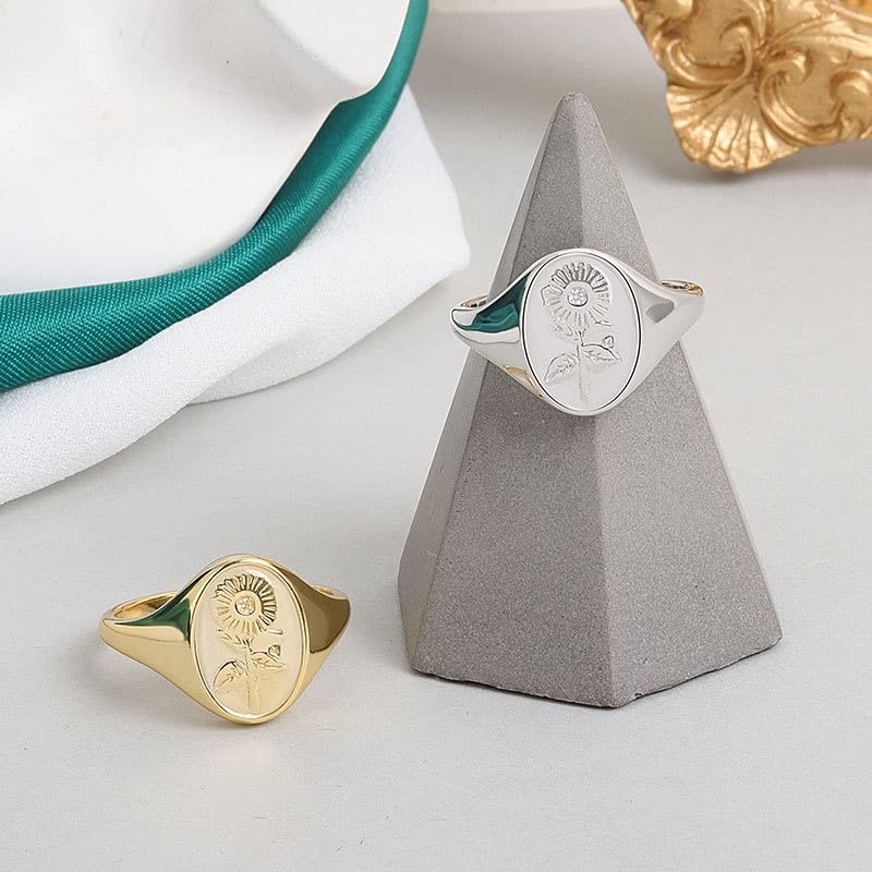 - Sunflower Ring: Our sunflower ring adopts a stamp design, engraved with flowers and plants, low-key and classic to bring you more compliments and make you stand out.