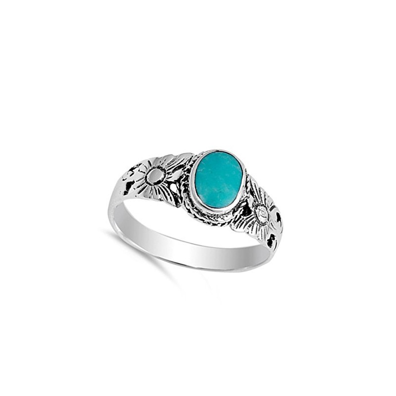 Flower Simulated Turquoise Fashion Bali Ring New .925 Sterling Silver Band Size 4