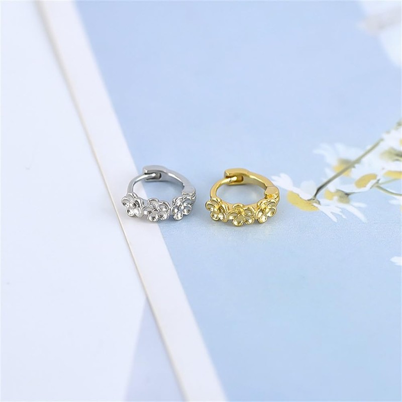 Flower Small Hoop Earrings for Women Cartilage Dainty Cute 925 Sterling Silver Post Floral Huggie Hoops Hypoallergenic Fashion Minimalist Trendy Jewelry, Small, Brass, No Gemstone