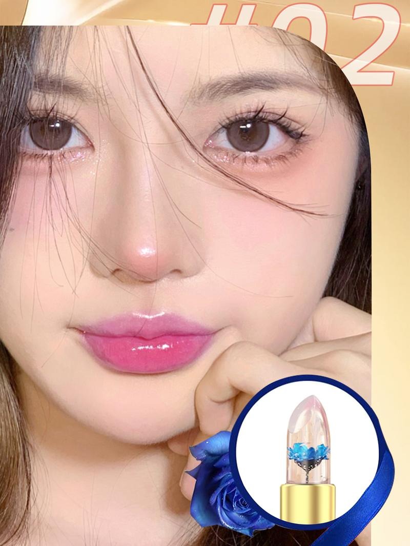 Flower-Design Temperature-Responsive Lipstick - 2-Pack, Long-Lasting, Moisturizing, Color-Changing Lip Colors in Red and Blue Flowers, Alcohol-Free and Fading-Resistant