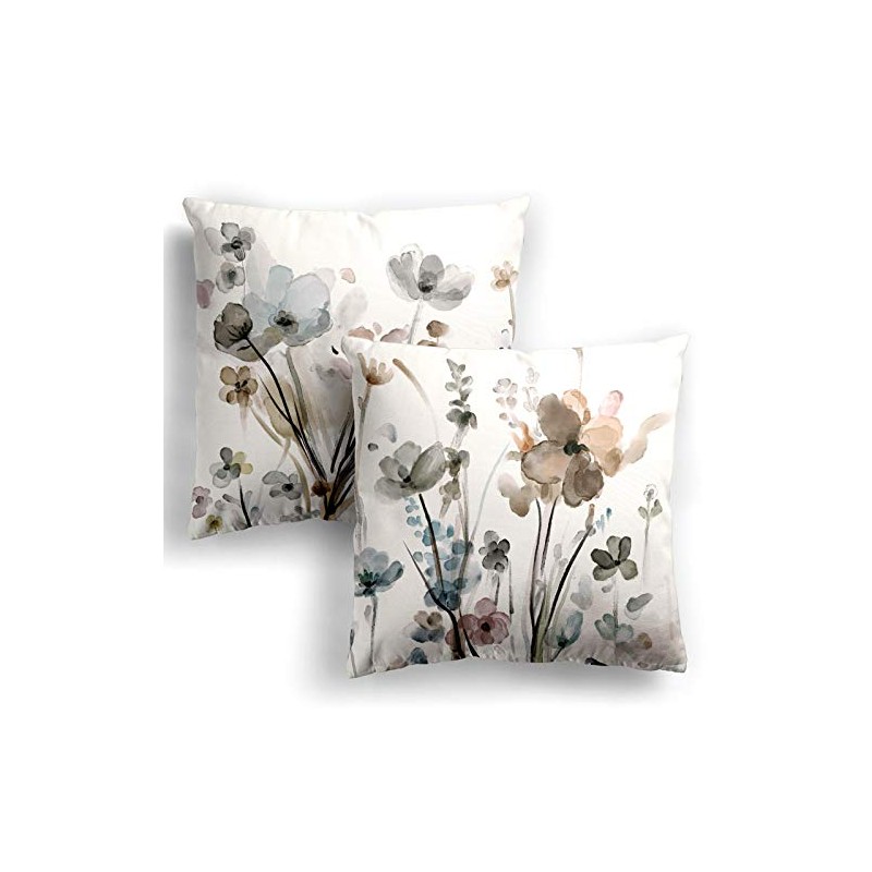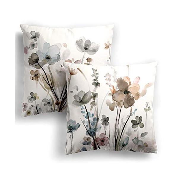 Flower Throw Pillow Covers 18x18 Set of 2, Flowers Pillow Cushion Cases, Modern Decorative Square Pillowcases for Sofa Couch Bedroom Living Room Car